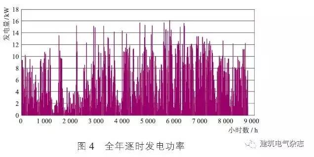 逐時(shí)光伏板發(fā)電功率為Q s= S η1η2P rad。其中,P rad為光伏板法向的逐時(shí)太陽(yáng)輻射強(qiáng)度(單位:W / m2)。計(jì)算得到全年逐時(shí)發(fā)電功率如圖4所示。