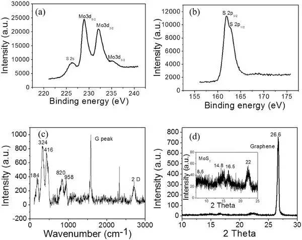 圖. 1T MoS2/石墨烯/ MoS2的化學成分及結構表征
